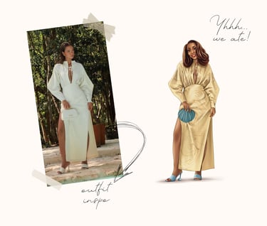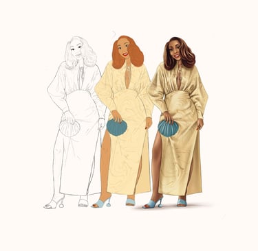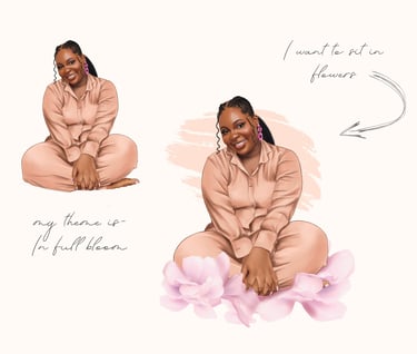 Poses, Outfits & Overall Mood: How do you envision the subject(s) in the illustration? Are they laughing, posing confidently, or engaged in an activity? What are they wearing? Providing specific ideas or reference images for poses (portrait, half body or full body) and outfits helps us set the scene. Also, tell us the mood you want to evoke (e.g., playful, serene, adventurous, dramatic). Feel free to add details of jewelry/accessories, shoes, hairstyles and patterns.